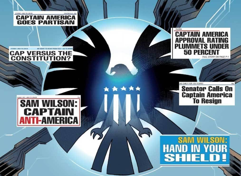 The new Avengers team will differ from its predecessor. Captain America's role is now officially tied to the US government, making the Avengers a branch of the defense department, a point acknowledged by Moore: "He certainly realized that the Avengers left unchecked may not be the best idea...power is more beneficial to him if it's under his command."